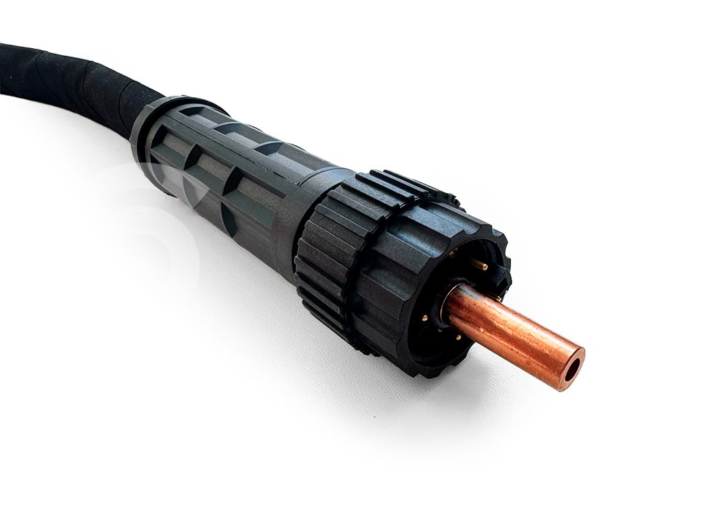 Varianta hořáku je vybavena centrální koncovkou typu EURO (CK), která patří mezi nejrozšířenější standardy připojení MIG/MAG hořáků. EURO konektor umožňuje rychlé připojení hořáku ke svářečce a současně zajišťuje přenos svařovacího proudu, ochranného plynu i ovládání spouště.