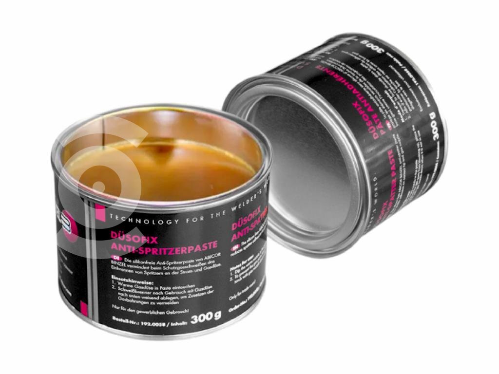 Svářecí pasta Düesofix je protirozstřikový ochranný prostředek určený pro plynové hubice MIG/MAG hořáků. Je biologicky odbouratelný, nepodléhá označovací povinnosti a neobsahuje silikon. Kovová dóza umožňuje ponořit do této pasty bez obav ještě horkou plynovou hubici, třeba i bezprostředně po ukončení svařovací operace. Ulpívání rozstřiku se působením ochranného filmu omezí.