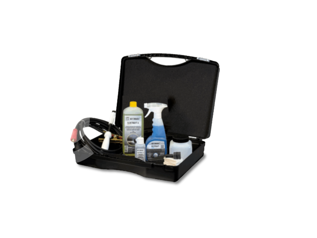 Startovací sada BYMAT EXPERT KIT pro elektrochemické čištění, leštění, pasivaci a značení nerezu. Kompletní řešení pro profesionální práci s nerezovou ocelí – od čištění svarů až po značení a úpravu povrchu.