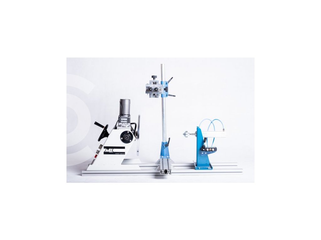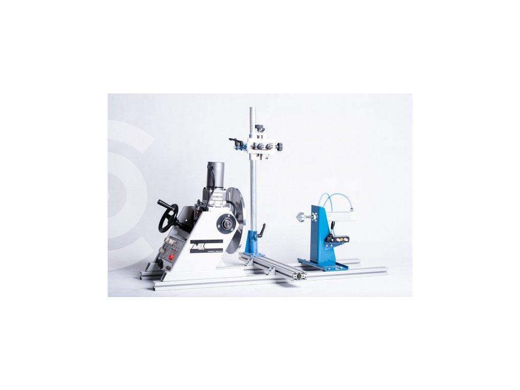 Sestava C-SET k polohovadlu PT101/201 se stavitelným držákem hořáku a přítlačným pneumatickým válce. Přítlačný válec lze používat pouze pokud je talíř polohovadla ve svislé poloze.